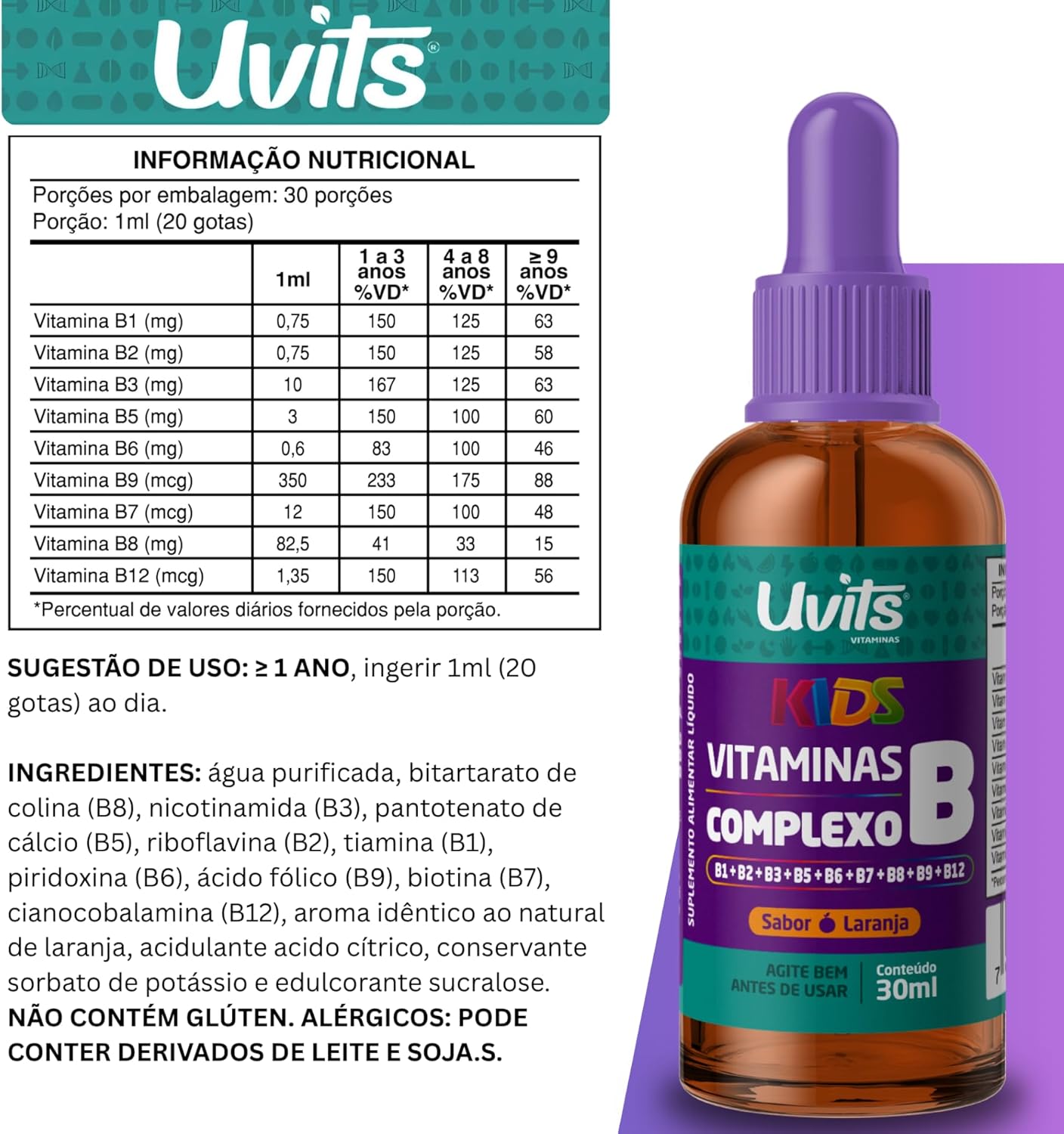 Vitaminas Complexo B Kids 30ml Liquida Doses – Uvits