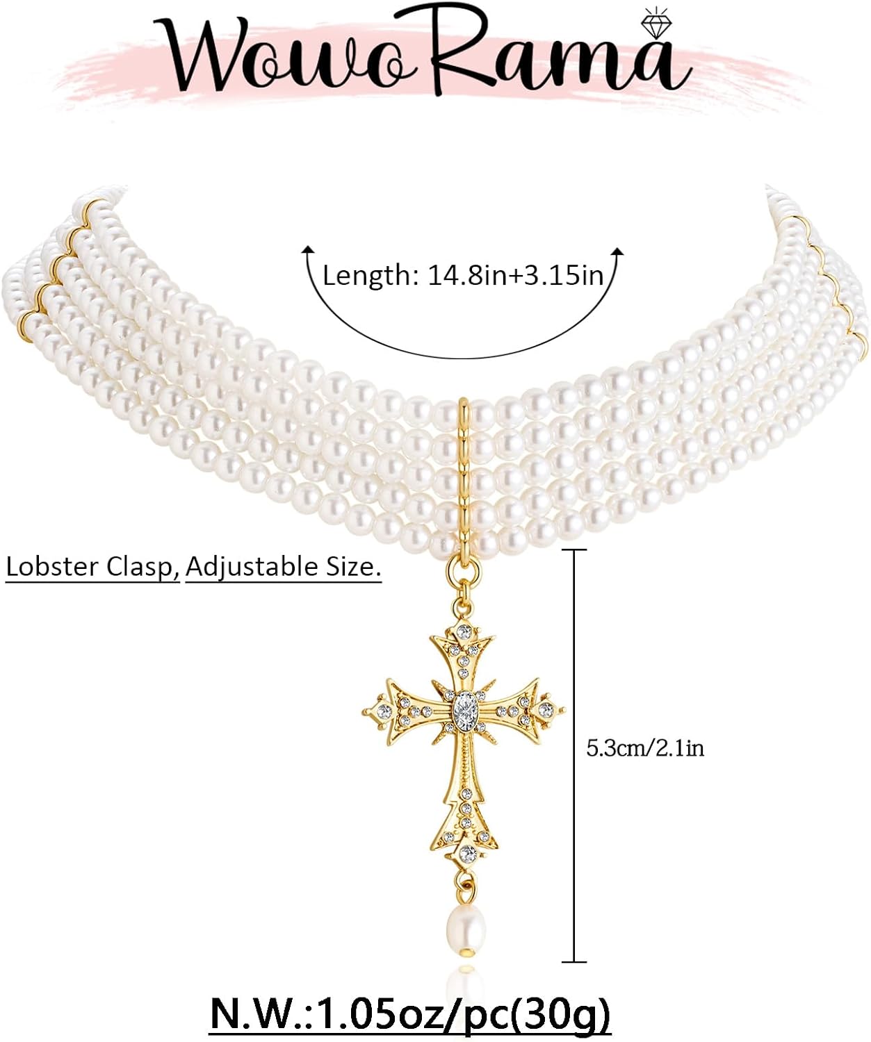 WOWORAMA Colar gótico com cruz de pérolas em camadas para mulheres, colares vintage punk gótico, cruz, pérolas, colares gargantilhas, presentes de Natal, joias góticas
